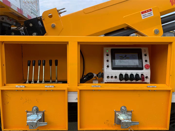 l 下车支腿操作箱配备照明灯,方便晚上工作,配置整车水平仪,保证车辆水平,确保安全。